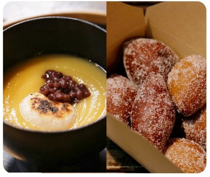 たっぷりの安納芋餡に香ばしく焼いたお餅と小豆を合わせた“蜜芋ぜんざい”は、一年のおいも初めにぴったりの味わい。1月6日(月)からは、まるで焼き芋のようなコロンとしたお芋のドーナツがお目見え!モチモチとした生地に安納芋の餡やクリームをギュッと閉じ込め、ボリューム満点のおやつに仕上げています。