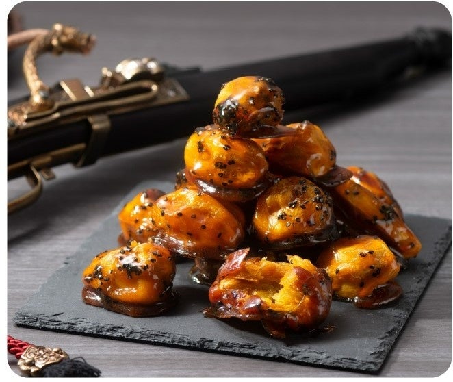 ねっとり&クリーミーな食感が特徴の安納芋にこだわって。時間をかけて素揚げし飴を絡め、冷ましてからもう一度飴を絡める“弐度絡め”製法を採用。飴に出汁や醤油を加え、さらに絶妙な焦がしを入れることで、甘みだけでなく、旨みやコクも感じられる深い味わいに仕上げています。