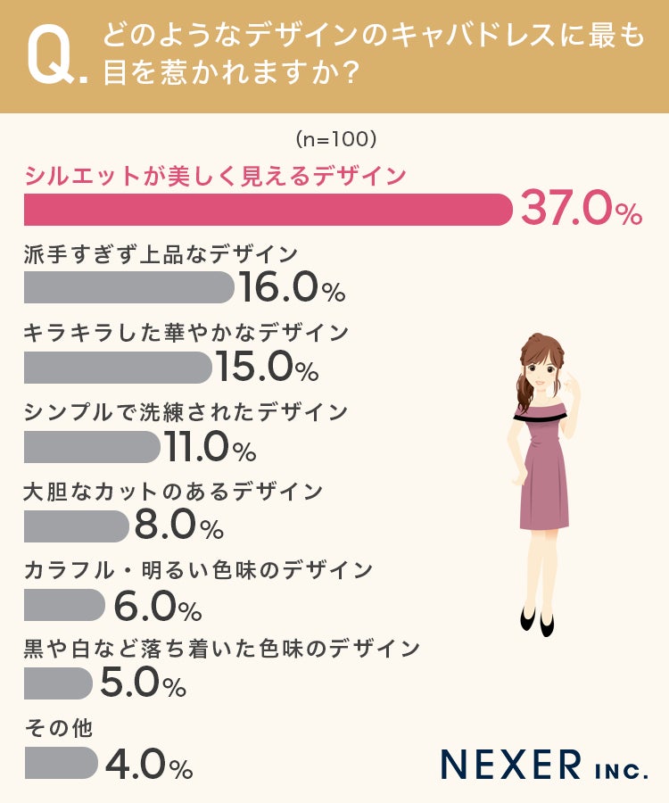 最後に、どのようなデザインのキャバドレスに最も目を惹かれるかを調査しました。