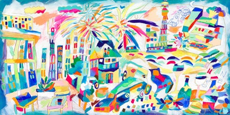 記念すべき「コスモグラシア街並みアートプロジェクト」第1弾は、作家・衣笠 泰介氏に制作を依頼しました。独自の色使いで作品を描く衣笠氏が、独自の開発で街を彩る当社にシンパシーを感じ制作いただいた、本プロジェクトだからこそ生み出された唯一無二の作品です。