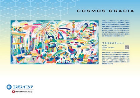 そこでこのたび、初協業となるヘラルボニーとのプロジェクト「コスモグラシア街並みアートプロジェクト」を実施します。ヘラルボニーは、国内外の主に知的障害のある作家の描く2,000点以上のアートデータのライセンスを管理し、さまざまなビジネスへ展開している企業です。お客さまとその先にある社会に“一歩先の価値”を提供する存在でありたいという強い思いが込められた『「Next GOOD」お客さまへ。社会へ。一歩先の発想で、一歩先の価値を。』をミッションとして掲げるコスモスイニシアと、「異彩を、放て。」をミッションに掲げ、福祉を起点に異彩作家とともに新しい文化をつくるヘラルボニーとの想いが共鳴し、本プロジェクトが実現しました。
