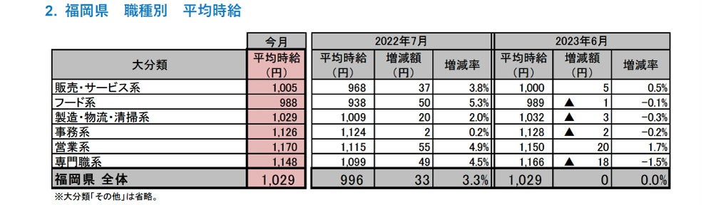 [福岡県版]2023年7月度 アルバイト・パート募集時平均時給調査福岡県の7月度平均時給は前年同月より33円増加の1,029円