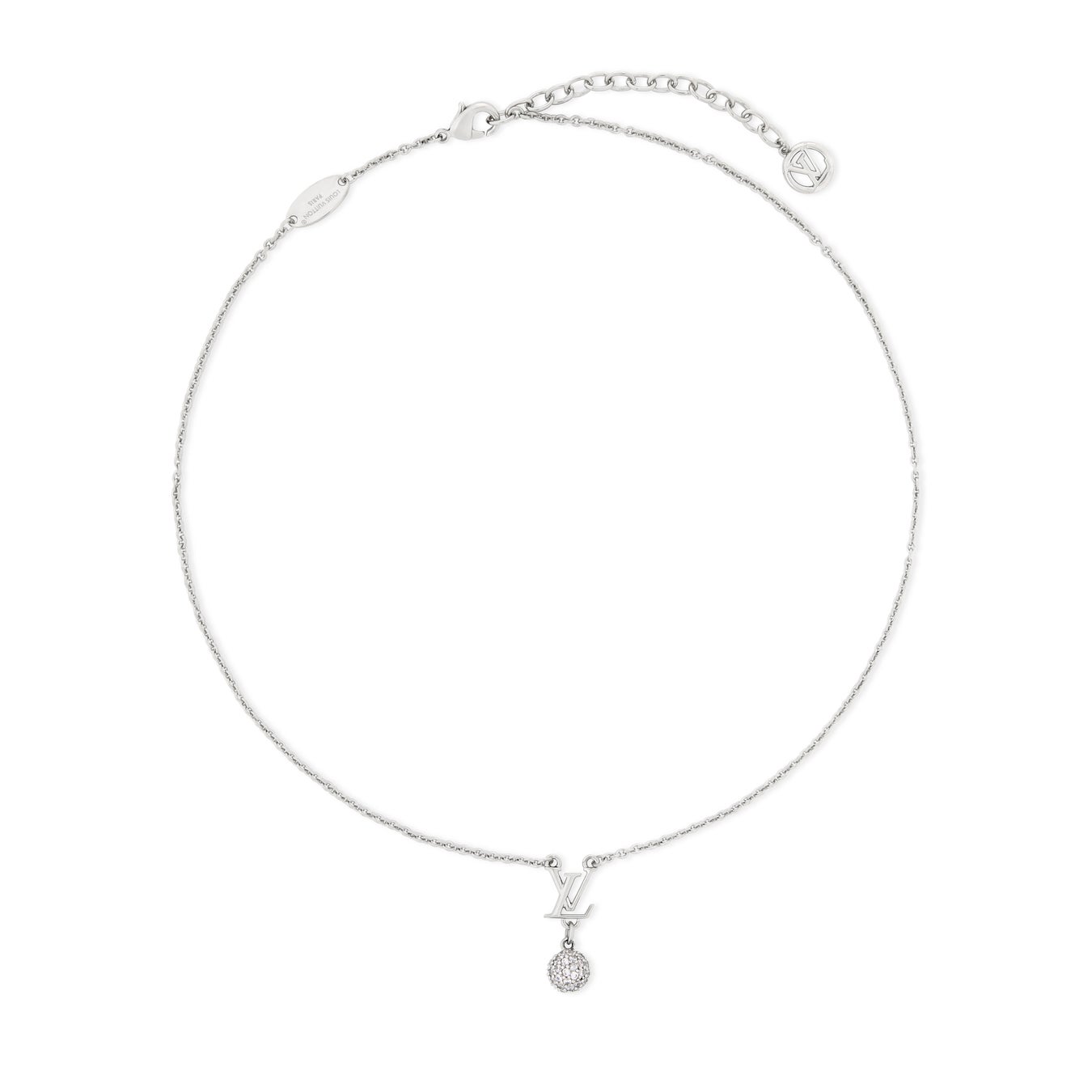 シルバーカラーのメタルで繊細に模った、華やかさとメゾンならではのタイムレスなエレガンスを放つ「ネックレス·LV アイコニック ルイザ ストラス」。ストラスを散りばめてプレシャスなきらめきのタッチを添えた精緻なディテールのビーズと、LV イニシャルのペンダントを組み合わせて、華奢なチェーンに配しました。特別なシーンにぴったりの軽量で着け心地のよいアイテムは、一晩中快適に着用できます。
