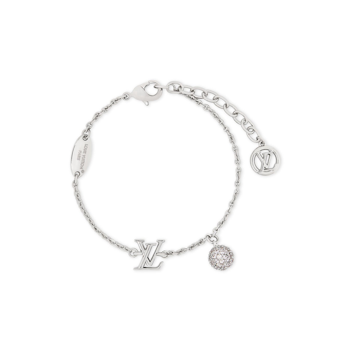 タイムレスなエレガンスと洗練されたシグネチャースタイルを組み合わせた、プレシャスな「ブレスレット·LV アイコニック ルイザ ストラス」。シルバーカラーの繊細なチェーンに、LV イニシャルのチャームときらめくストラスを散りばめて精緻に仕上げたビーズを配しました。軽量で快適に手首に着けることができ、シックなイブニングルックに個性的な華やかさを添えるアイテム。