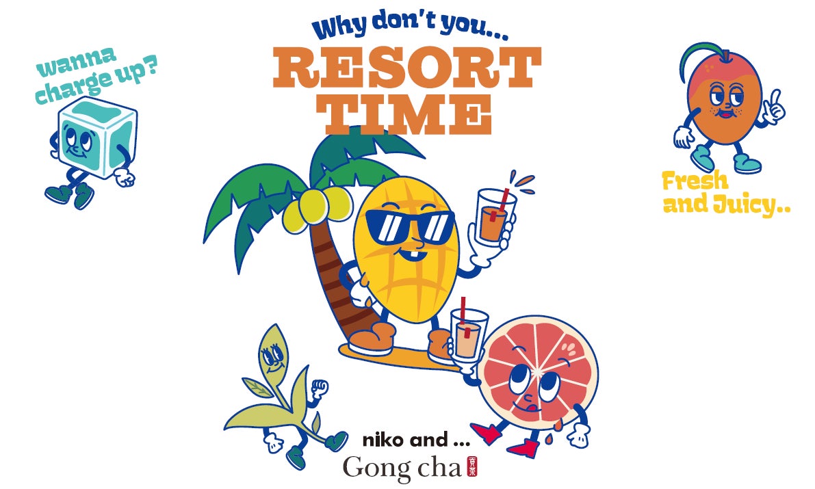 「Gong cha」の「ピングレマンゴー リゾート」のコンセプト『元気、チャージしに行かない?』に合わせ、「niko and ...」がデザインしました。