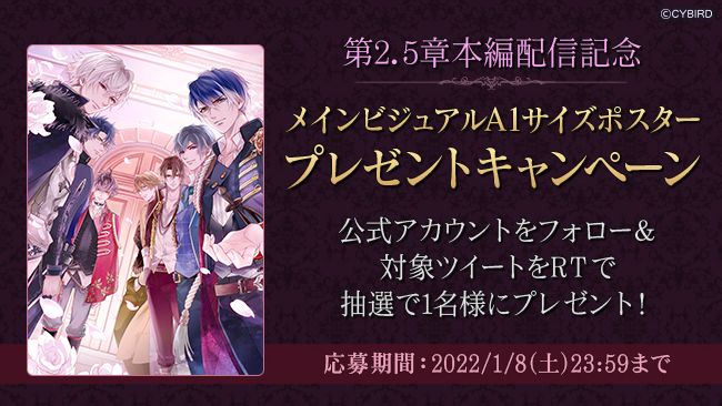 株式会社サイバード(本社:東京都渋谷区、代表取締役社長 兼 CEO 本島 匡、以下「サイバード」)が手掛ける、全世界でのシリーズ累計会員数3,500万人を誇る女性向け恋愛ゲーム「イケメンシリーズ」の人気タイトル『イケメンヴァンパイア◆偉人たちと恋の誘惑』は、2021年12月24日(金)より第2.5章のストーリーの配信を開始します。