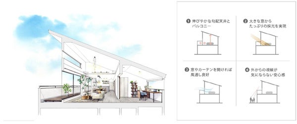 『イニシアフォーラム井の頭恩賜公園』7号棟SOLAリビング断面イメージイラスト/2階リビング概念図
