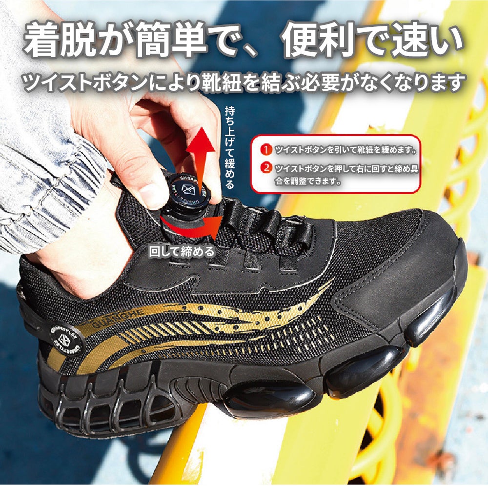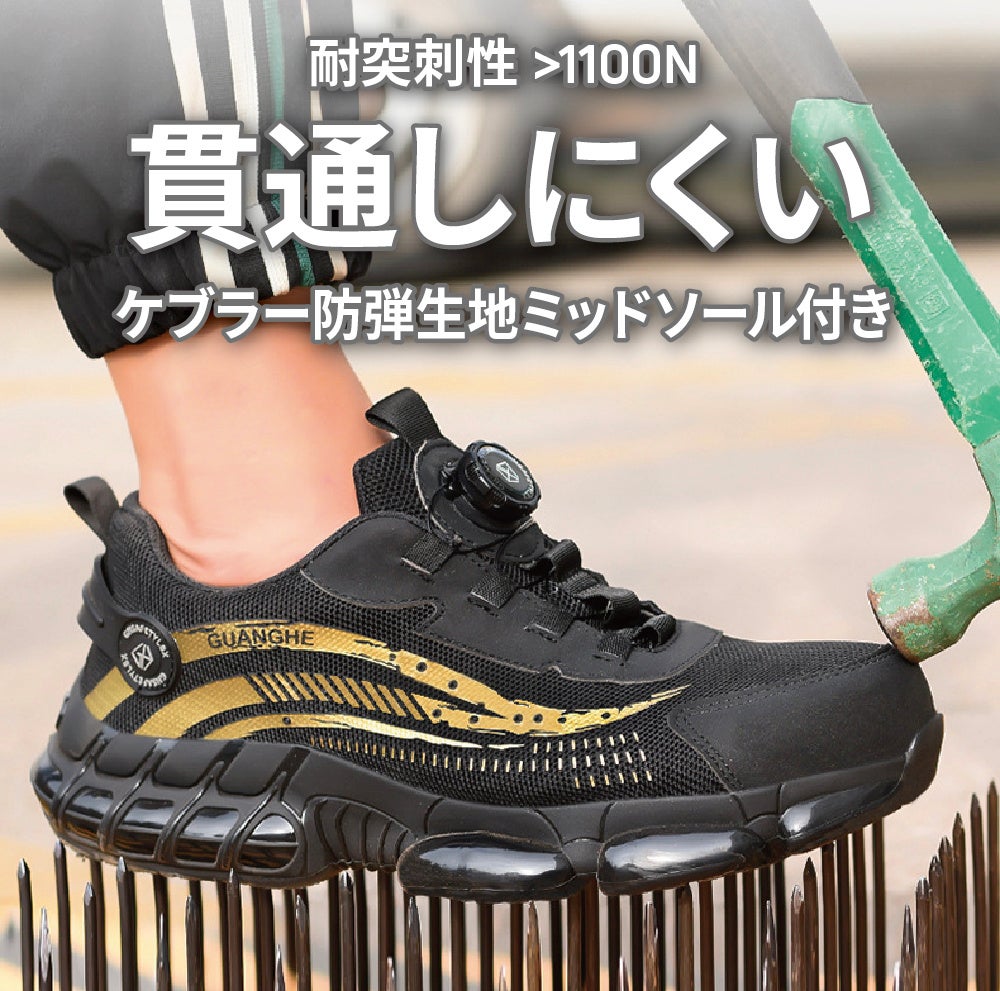 【軽量/エアクッション内蔵/踏み抜き防止のケブラー素材/スチールでつま先保護/滑りにくい靴底】