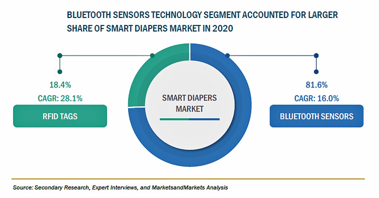 スマートおむつは、Kimberly-Clarkが2018年10月におむつのブランド Huggies で初めて発売した比較的新しい商品です。同社は、赤ちゃんの排便を親にメールするBluetoothセンサーの発明を集結させました。米国でスマートおむつを製品として市場に投入した大手企業はハギーズが初めてですが、スマートおむつの開発は同社だけではありません。2019年、パンパースはBluetoothセンサーを強化したスマートおむつのラインナップを発売しており、2021年には、マサチューセッツ工科大学の研究者が水分センサーRFIDタグを埋め込んだスマートおむつを開発しました。この技術はまだ完全に商業化されていませんが、スマートおむつの成長に新たな機会をもたらすと期待されています。