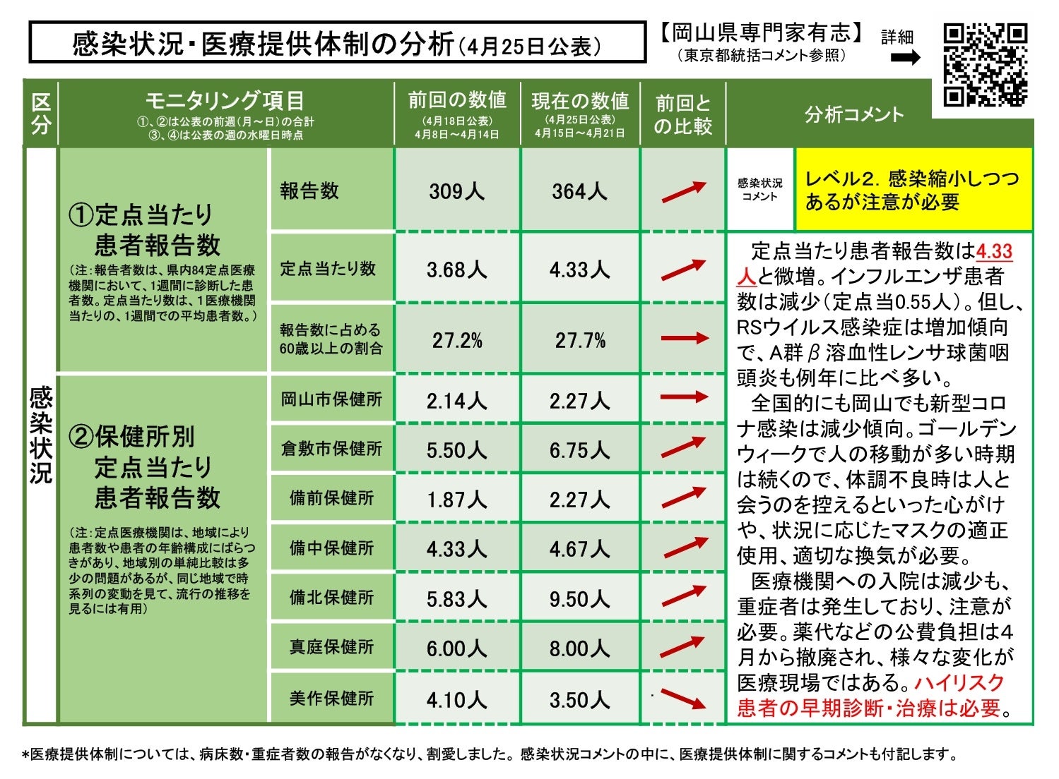 【岡山大学】岡山県内の感染状況・医療提供体制の分析について(2024年4月25日現在)