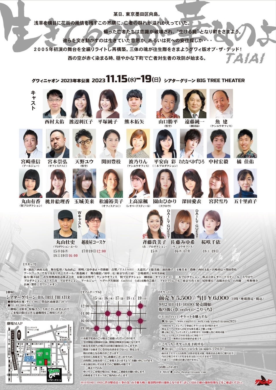 山口勝平、遠藤純一、魚建、桜咲千依 他 声優出演 グワィニャオン伝説の人気公演を再構築!ゾンビ溢れる向島を描くグワィ版オブ・ザ・デッド!カンフェティでチケット発売中!