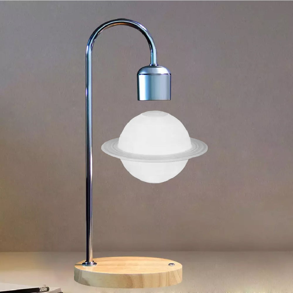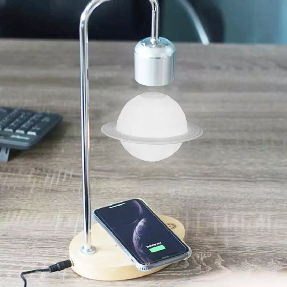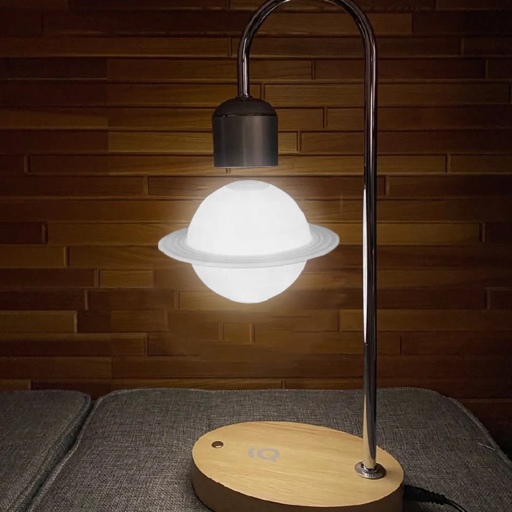ギフトにも喜ばれる、土星が空中に浮かぶ幻想的なインテリア照明。スマートフォンのワイヤレス充電機能付きで寝室・リビング空間に便利!