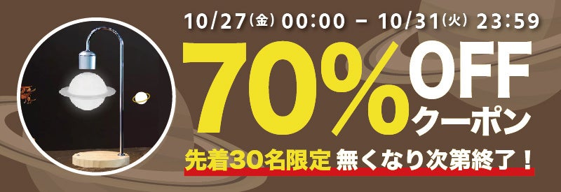 条件・期間 | 先着30名様 10/27(金)00:00 ~ 10/31(火)23:59 |