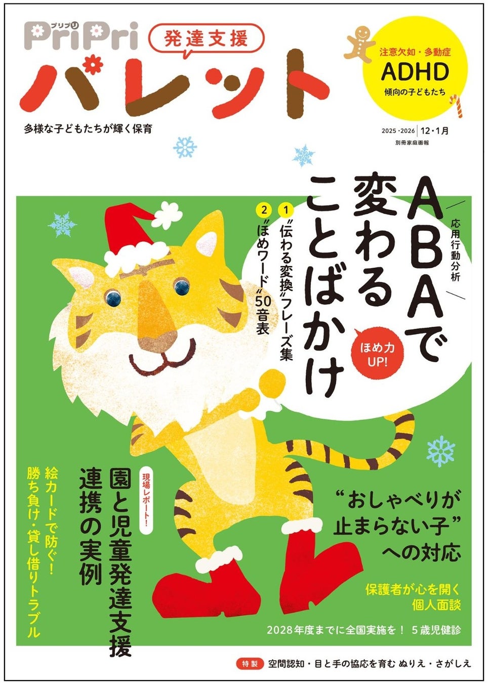 10月30日(木)発売の『PriPriパレット12・1月号』では、子どもの行動の前後に注目して不適切な行動を減らすABA(応用行動分析)に基づいたことばかけを大特集! そのほか、ADHD傾向の子どもをポジティブに伸ばすタイプ別の関わり方や、園と児童発達支援との連携の実例を取り上げます。