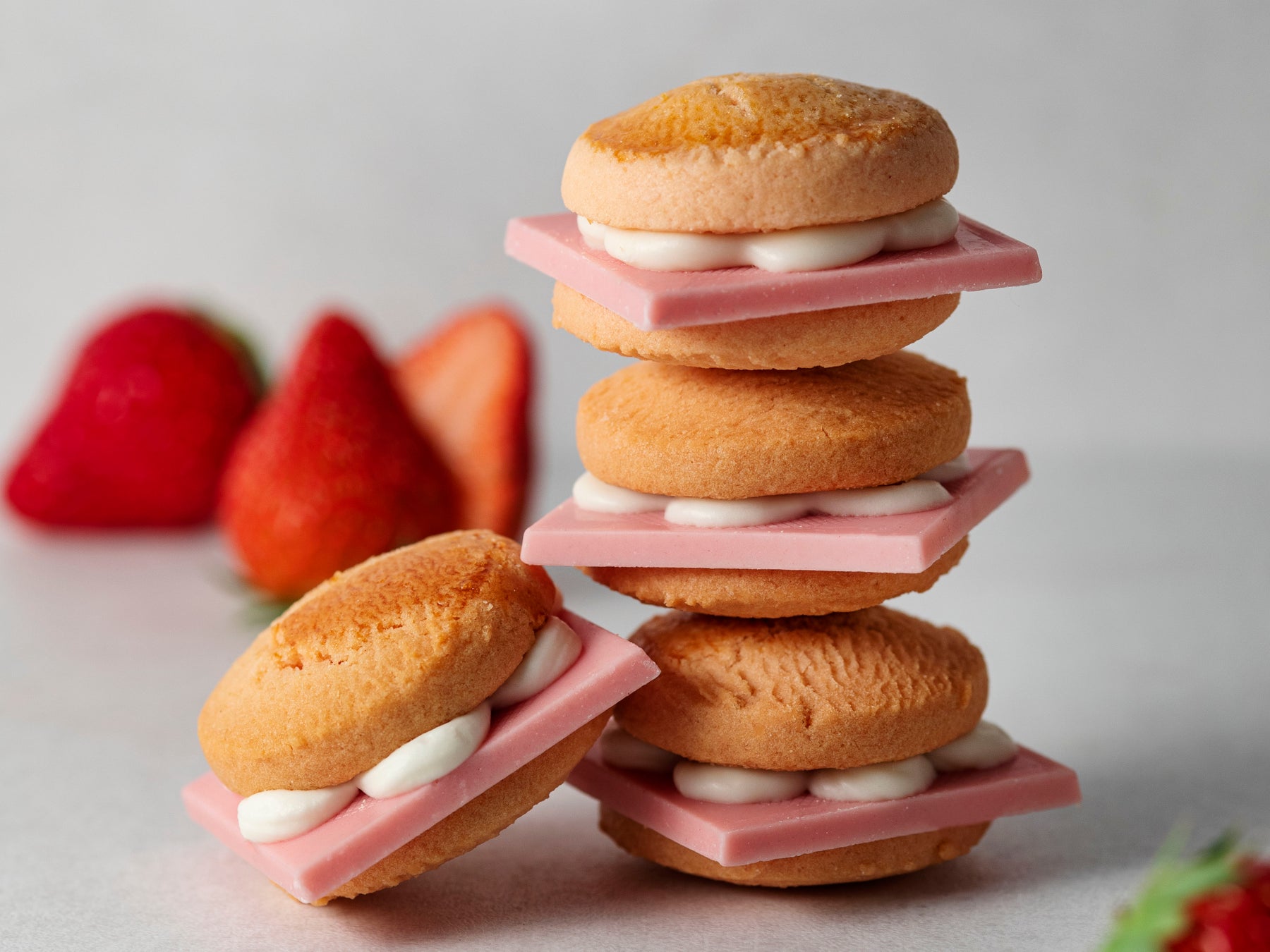苺が香るバンズクッキーにホイップショコラをぷっくりしぼりました。