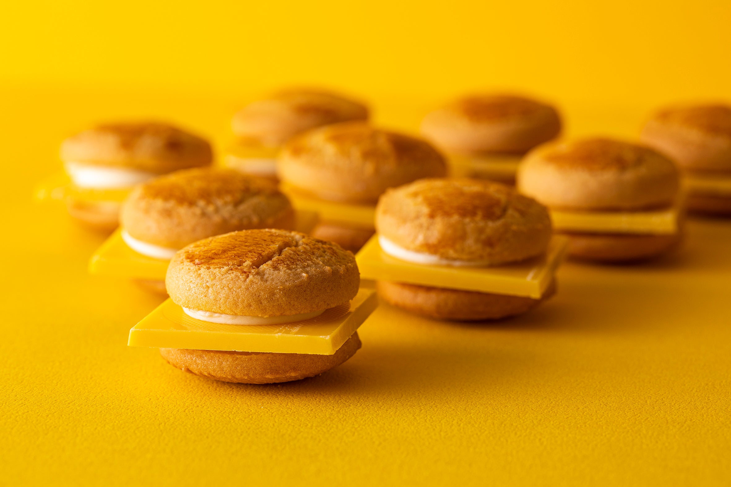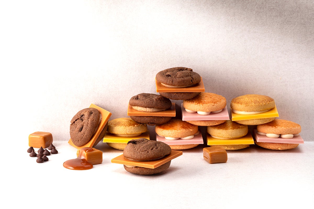 チーズ香るバンズクッキーとホイップショコラでサンドしました。