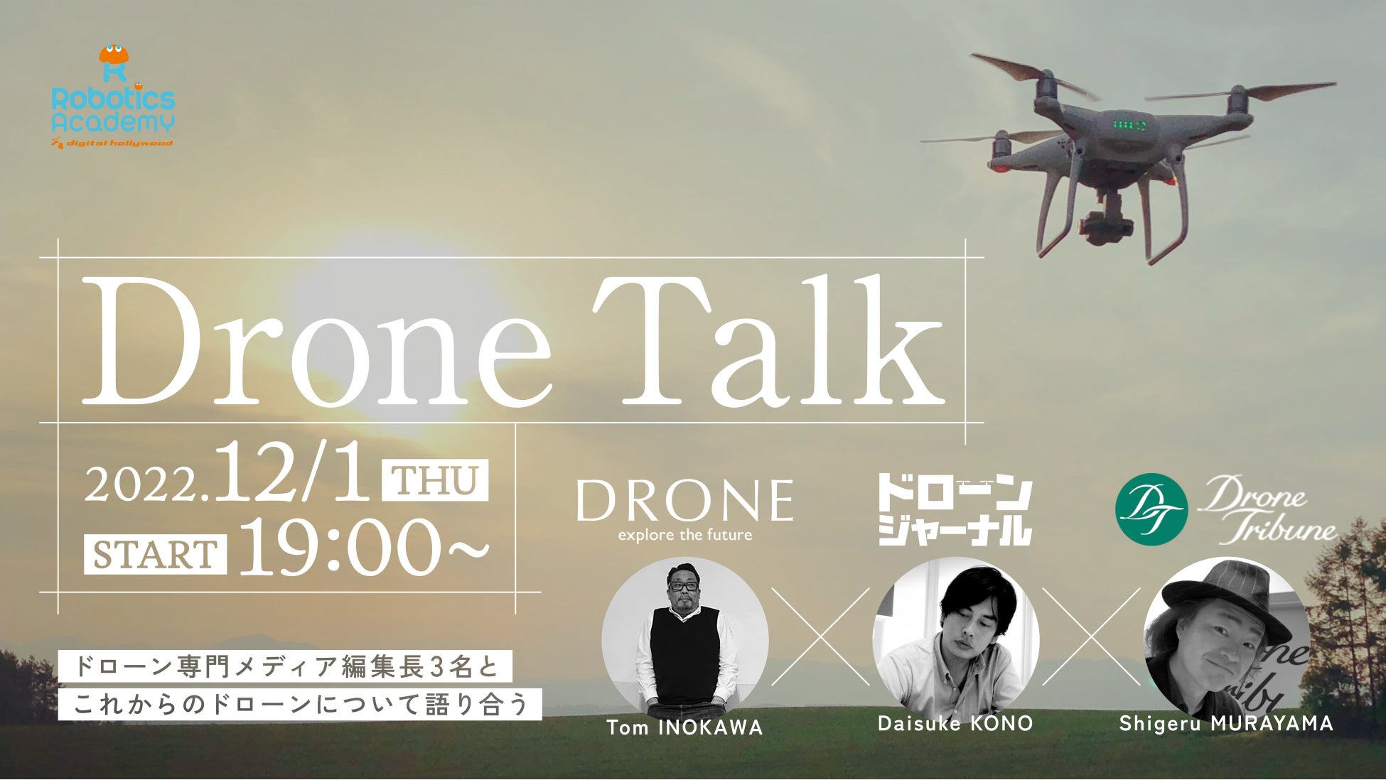 【イベント】ドローン専門メディア編集長3名とこれからのドローンについて語り合う『DroneTalk』開催|デジタルハリウッド ロボティクスアカデミー