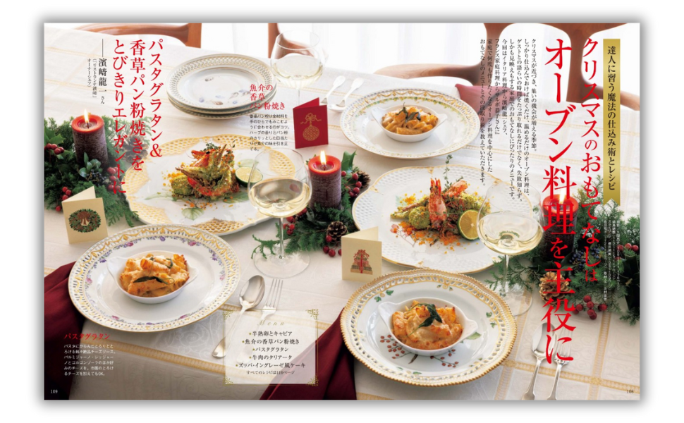 しっかり仕込んでおけば焼くだけ、温めるだけのオーブン料理は、ゲストとの語らいの時間をたっぷり取れるだけでなく、失敗知らず、しかも見映えもする家庭でのおもてなしにぴったりのメニュー。今回は、イタリア料理から濱﨑龍一シェフ、フランス家庭料理からサルボ恭子さんにオーブン料理を中心にしたおもてなしのメニューとその段取り術を教えていただきます。