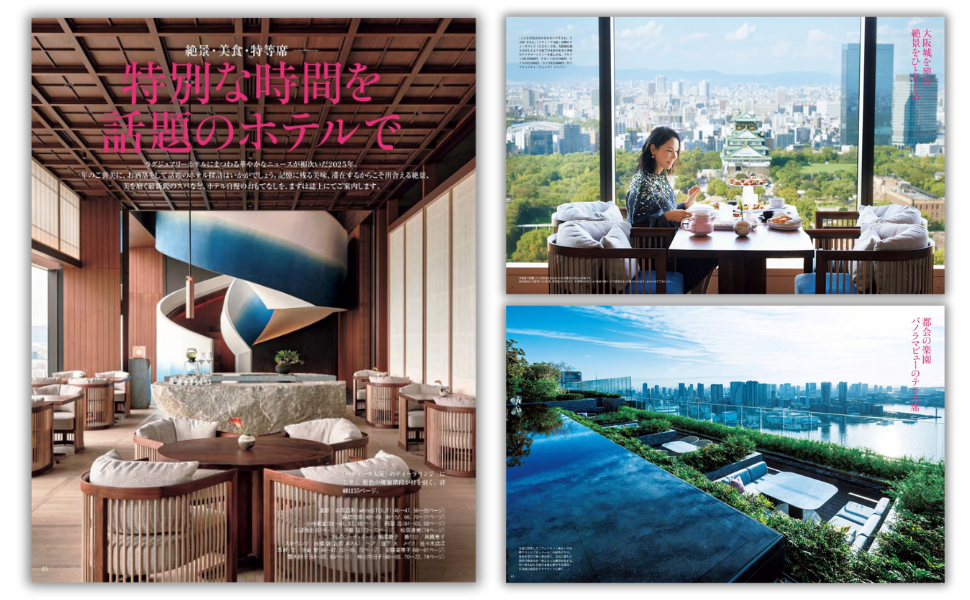 2025年は日本初進出の海外ホテルブランドを筆頭に、ラグジュアリーかつ個性的なホテルが大都市圏にお目見えしました。俳優の吉田羊さんと訪れた大阪をはじめ、東京・名古屋の最旬ホテルをご案内します。さらに、腕利きのシェフたちが華やかなメニューを用意するホリデーシーズンのスペシャリテを、東京・京都・福岡のラグジュアリーホテルからお届けします。