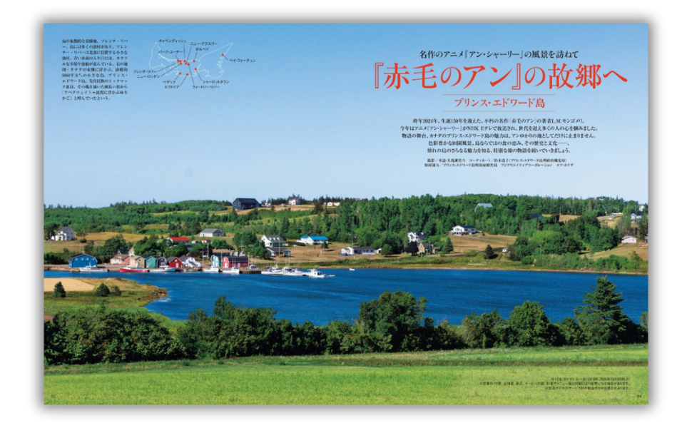 2024年、生誕150年を迎えた不朽の名作『赤毛のアン』の著者L.M.モンゴメリ。物語の舞台、カナダのプリンス・エドワード島でアンゆかりの地を巡り、色彩豊かな田園風景、島ならではの食の恵み、その歴史と文化――憧れの島のさらなる魅力を知る、特別な旅の物語を紡ぎます。