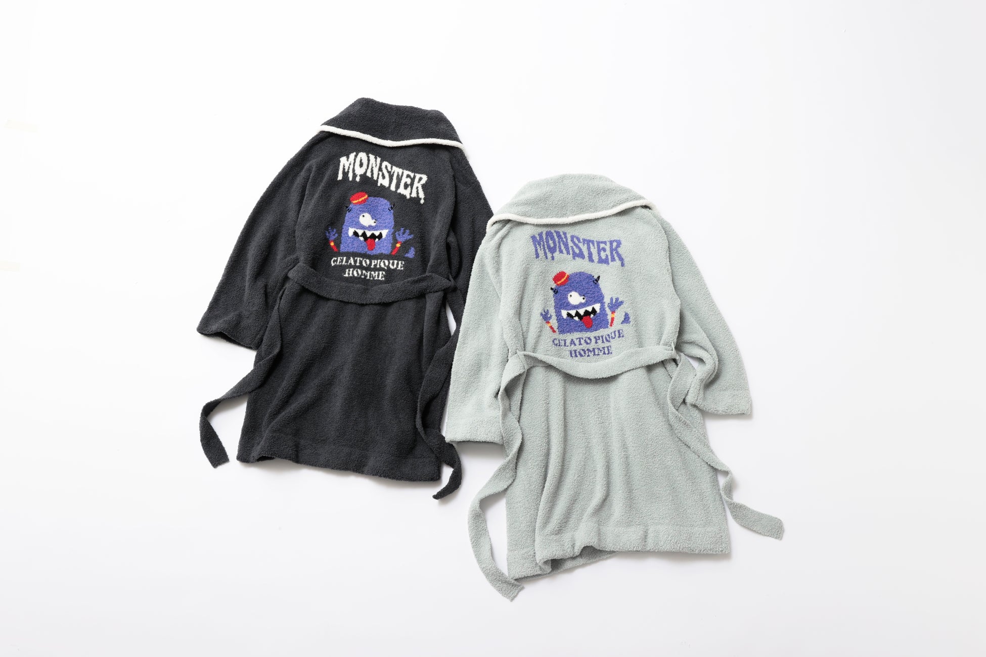 プルオーバーはフロントに、ガウンは背中にモンスターをダイナミックに表現しています。