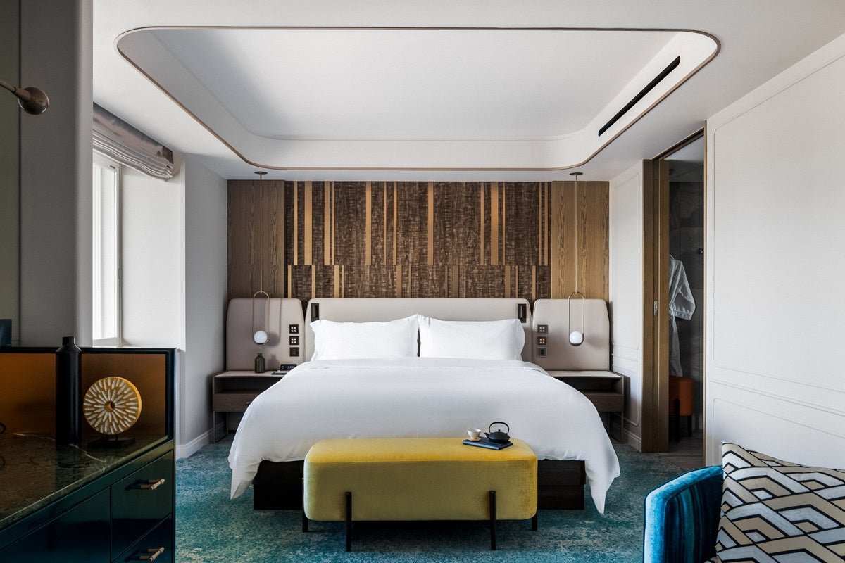 2021年に完了したリニューアルでは、5つのレストラン&バーが生まれ変わりました。オールデイダイニング「洛空」では眺望を楽しみながら季節ごとのテーマブッフェを、「ドミニク・ブシェ キョート」では、京都産野菜や地元食材を取り入れ、伝統的なフレンチの技法を軸に四季や京都の魅力を表現する洗練された美食をお楽しみいただけます。客室は広々とした空間と独立したバスルームを備え、全室に雲の上で眠るような寝心地の「ヘブンリーベッド」を設置。周辺環境との調和を大切にした洗練された客室の窓からは、中庭の緑や京都市内の眺望をご堪能いただけます。