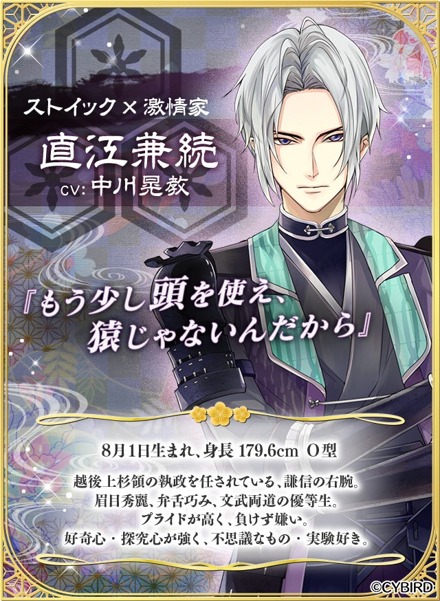 株式会社サイバード(本社:東京都渋谷区、代表取締役社長 兼 CEO 本島 匡、以下「サイバード」)が手掛ける、全世界でのシリーズ累計会員数3,500万人を誇る女性向け恋愛ゲーム「イケメンシリーズ」の人気タイトル『イケメン戦国◆時をかける恋』は、「直江兼続(CV:中川晃教)」の、待望の本編ストーリーを、2022年1月7日(金)12時より配信開始します。