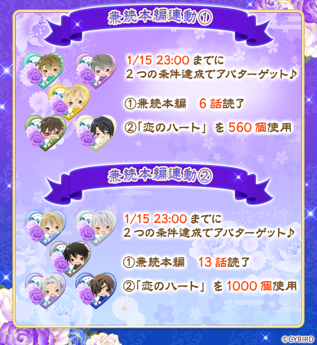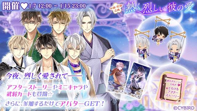 さらに、「恋のハート」の使用数に応じて、特別ストーリーや豪華なアバターアイテムなどを獲得できる本編・続編応援キャンペーン「熱く烈しい彼の愛」も開催中です。※詳細はゲーム内告知をご確認ください。