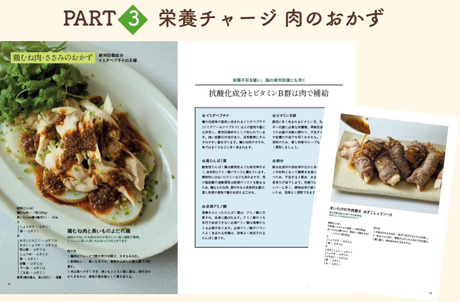 主要なたんぱく源の肉は脳機能維持にも欠かせない食材です。筋肉や血液、ホルモンの材料となるだけでなく、神経伝達物質の合成などの役割があります。PART3ではヘルシーなのに食べ応えのある肉料理を紹介。効率よく脳の栄養不足を解消しましょう。