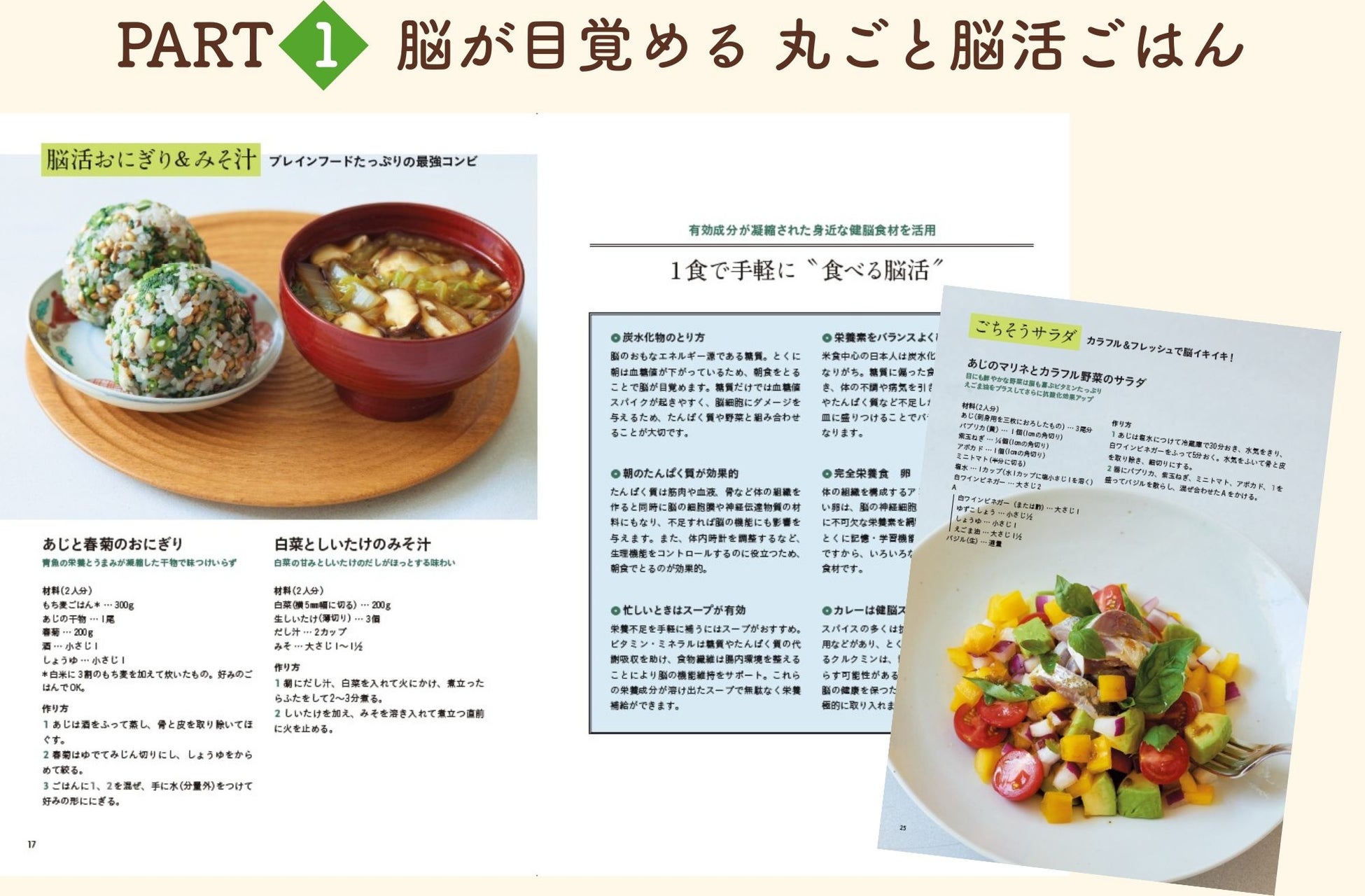 PART1では、朝食に摂取推奨の炭水化物、脳細胞や神経伝達物質となるたんぱく質が豊富に含まれるレシピを紹介しています。朝食レシピやたまご料理、さらには「脳活カレー」など幅広いレパートリーです。さらに野菜や海藻をプラスすると完璧!