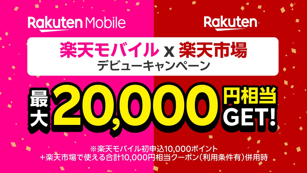 楽天モバイル、条件達成で最大20,000円相当分おトクになる「楽天モバイル × 楽天市場 デビュー」キャンペーンを6月1日より実施