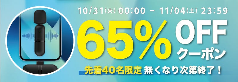 条件・期間 | 先着40名様 10/31(火)00:00 ~ 11/04(土)23:59 |