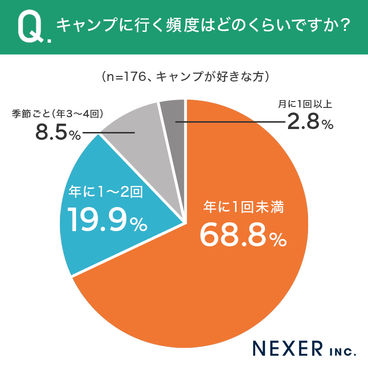 続いてキャンプ好きの方に、キャンプに行く頻度について調査しました。