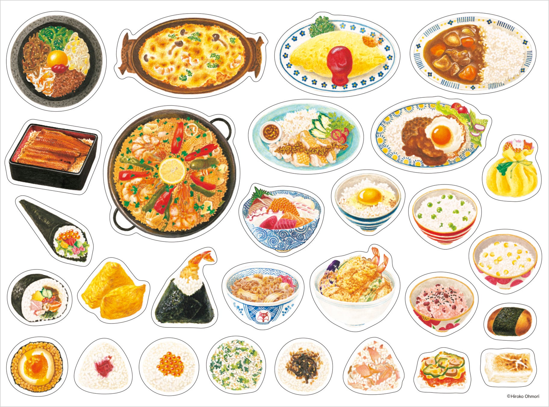 「いらっしゃいませ! きつねごはんへ ようこそ。」 毎年大好評、おみせやさんごっこができる、シール&ポスター。今年はお待ちかねの「ごはんやさん」です。テーブルやお皿に各国の料理を並べて、自分だけのごはんやさんを作ってみよう! おにぎりにおすしに丼……「今日のご注文は?」なんて遊んでいるうちに、おなかが空いてしまうかも?