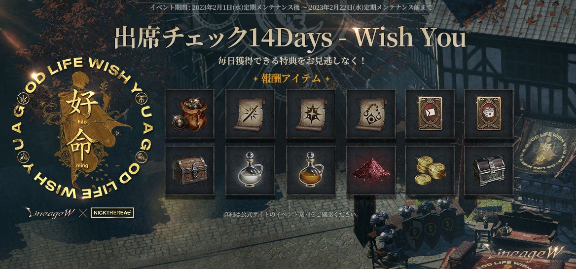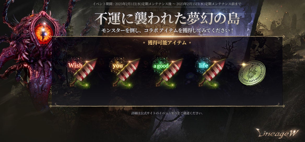 『リネージュW』本日より「Wish You A Good Life」コラボレーション開催!コラボレーションを記念した「不運に襲われた夢幻の島」を含むイベント3種の実施