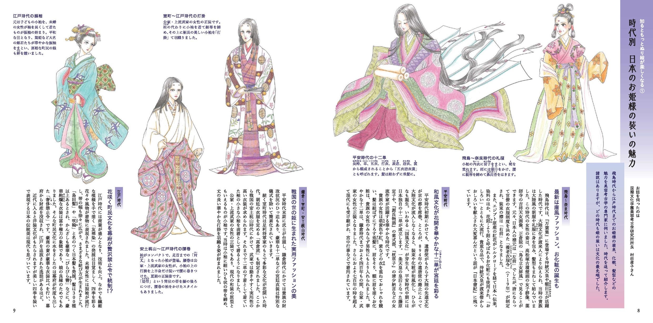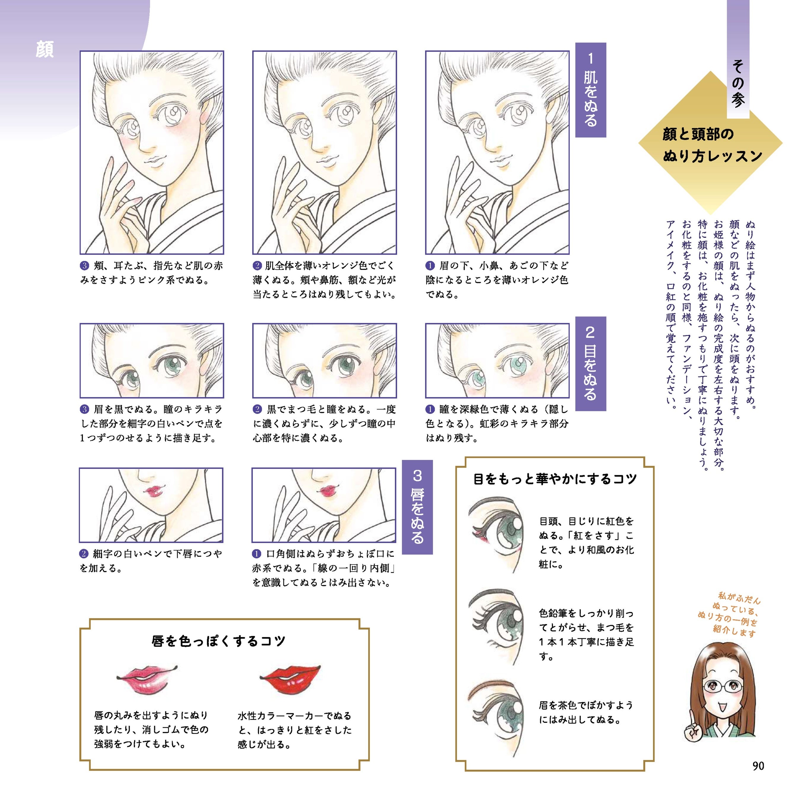 日本の姫に魅せられた作家による華麗な絵。ぬり方のレッスンも載っています