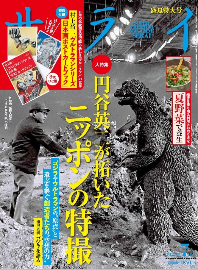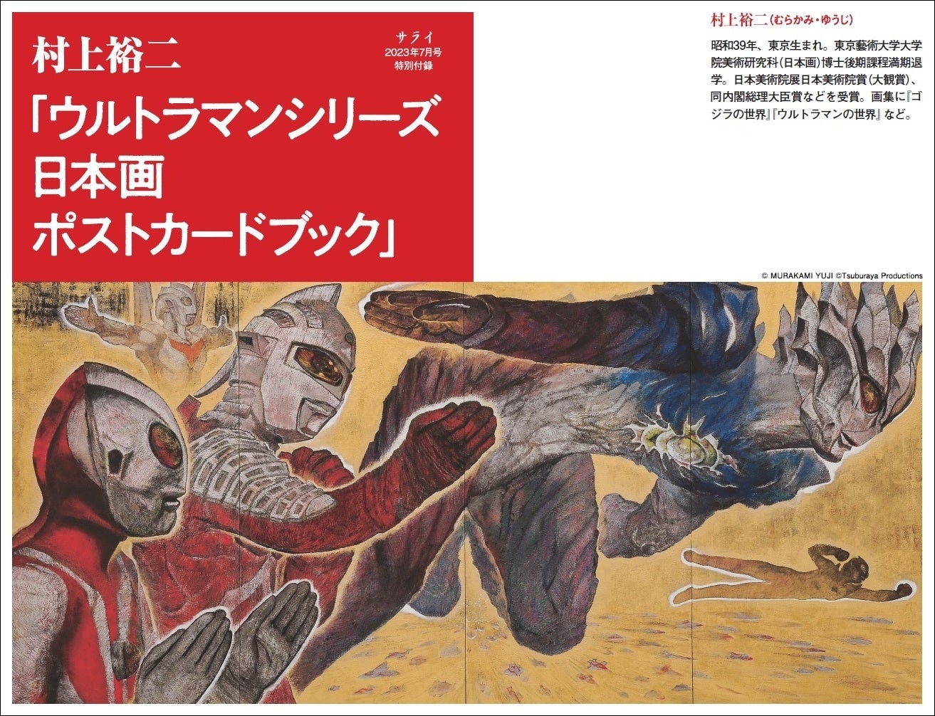 6月8日発売の『サライ』7月号の特別付録は、「村上裕二『ウルトラマンシリーズ日本画ポストカードブック』」。