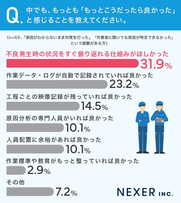 さらに「最も強く感じたこと」を尋ねると「不良発生時の状況をすぐ振り返れる仕組みがほしかった」が31.9%で最も多くなりました。
