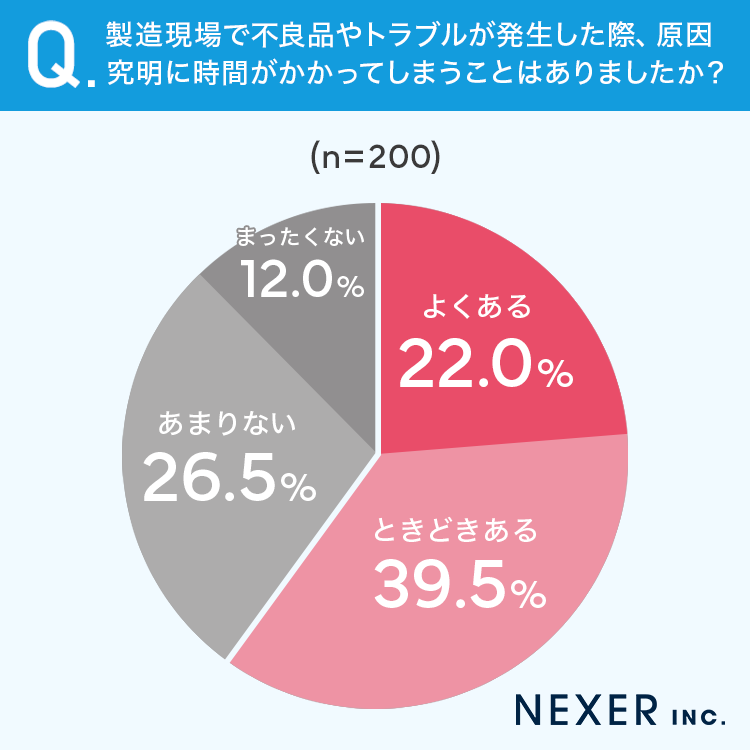 今回の調査では、製造現場の6割以上が原因究明に時間がかかった経験を持ち、3割以上が原因が特定できないまま対策を打たざるを得なかったことがわかりました。