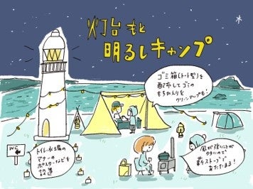 続いてのトークセッションには、イラストレーター・エッセイ漫画家・キャンプコーディネーターのこいしゆうかさん、内閣府クールジャパンプロデューサーの陣内裕樹さん、地理女net代表・日本地理学会員の森順子さんが登壇。こいしさんは、「灯台はキャンプとの相性が抜群。海の絶景に加え、日の入り、日の出の両方が見え、地球を感じられる。人が少ないので自分だけの過ごし方ができる」とし、「灯台もと明るしキャンプ」と題した描きおろしイラストを発表しました。森さんは「地理的視点から見た灯台の楽しみ方」として、灯台が立つ場所の地形や海・川などとの関係性は非常に興味深く、それらを学ぶまちあるきツアーは観光はもちろん、教育の分野でも可能性があると提案。陣内さんは二人の発表を受け、「灯台は、日本の端っこのアイコン。灯台を絡めたキャンプやまち歩きツアーを通じて端っこの地域が活性化することは、日本全体の活性化につながる」と延べ、さらに「取り組みを成功させるための法則として、作ること、伝えること、分析には3:6:1の割合で取り組むことが肝要。」とアドバイスしました。