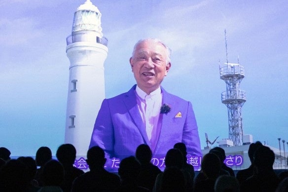 笹川会長は犬吠埼灯台(千葉県)からのビデオメッセージで、まず、第1等フレネルレンズや霧信号所の機能や、犬吠埼灯台が国の登録有形文化財であること、来年、点灯150周年を迎えることなどを紹介。