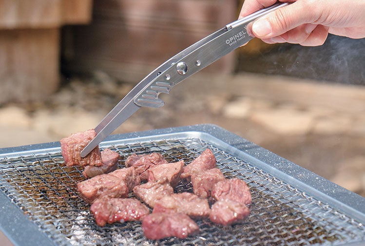 長さ2段階で串はずしにも使える! OPINEL×BE-PAL『折りたためる3WAY“BBQトング”』がBE-PAL最新号の特別付録に