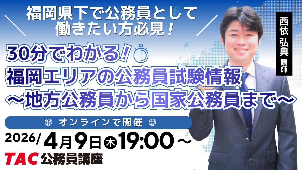 【TAC公務員】「福岡エリアの公務員試験情報~地方公務員から国家公務員まで~」を4/9(木)にオンラインで開催!