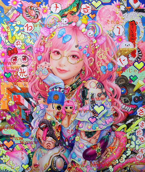 今回の個展『OVERLOAD』では、僕自身の脳内に溢れ出すイメージと、現代社会が抱える情報の濁流をキャンバスに叩きつけた結果出来上がった作品を展示しています。