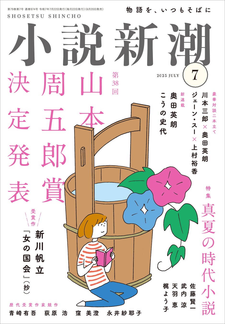 また、「真夏の時代小説」と題した特集では、佐藤賢一さん、武内涼さん、天羽恵さん、梶よう子さんらによる短編小説を掲載。ジェーン・スーさんと上村裕香さんによる対談では、親の介護をめぐるモヤモヤと、それを笑い飛ばす知恵について語ります。第38回山本周五郎賞の選評や、受賞作家の新川帆立さんによる受賞記念エッセイ「ホタテカップ開催録」など、見どころ満載の一号です。