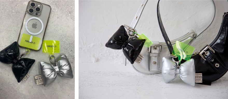 イオンモール大高店、ルミネエスト新宿店で税込5,000円以上お買い上げいただいたお客さまに、オリジナルのマルチウェイリボンチャームをプレゼントします。トレンドのリボンモチーフをあしらい、スマホストラップ、バッグチャーム、キーホルダーなどマルチにご使用いただけるアイテムです。