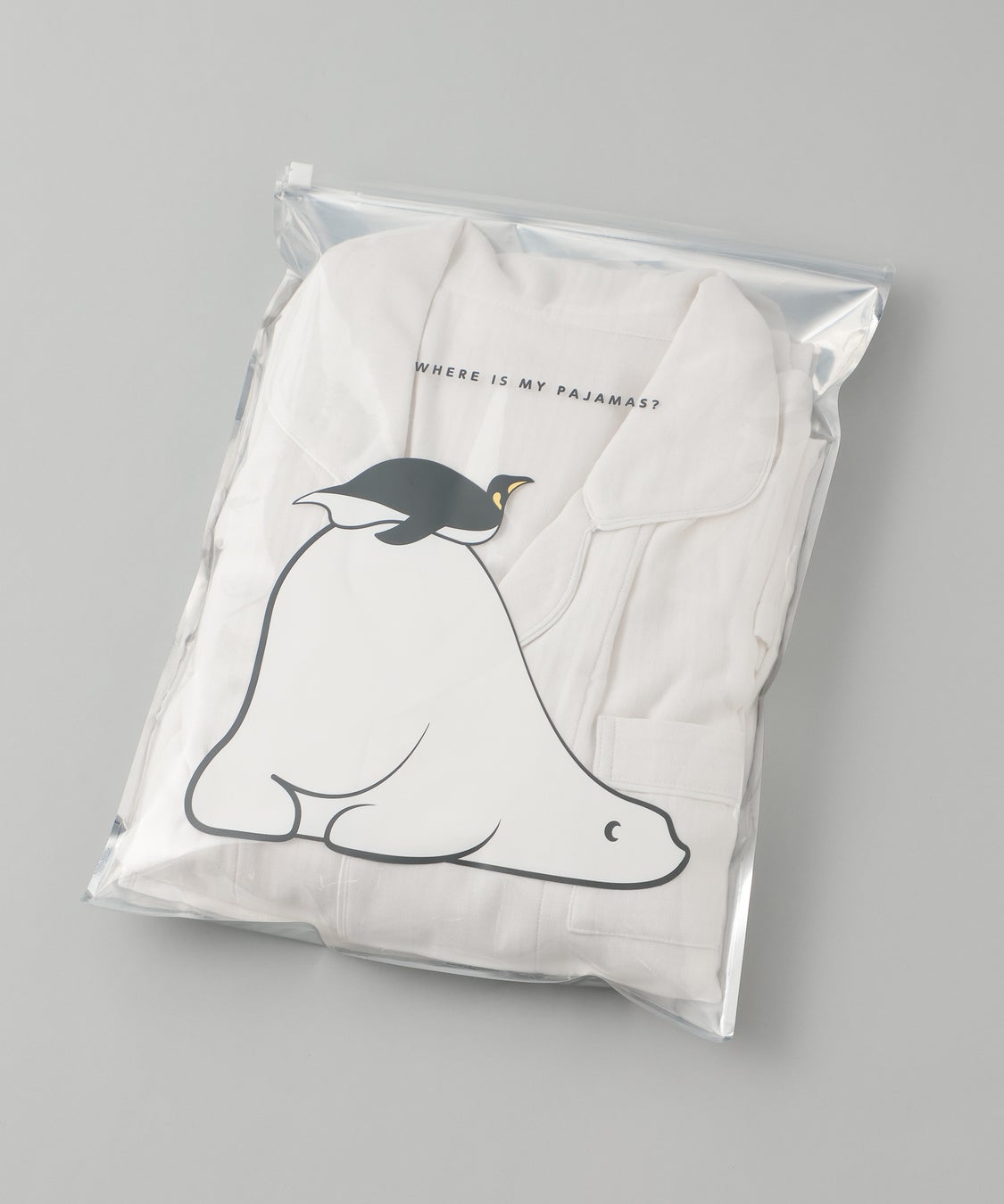 夏場に化粧水やパックを冷蔵庫で冷やすように、「眠るときに肌に触れるパジャマも、冷やしてから着てみては?」というユニークなアイディアから生まれたパッケージデザイン。シロクマとペンギンのイラストが入ったスライドジッパー袋を採用し、“パジャマを冷蔵庫に入れて冷やす”という新習慣をご提案するデザインです。