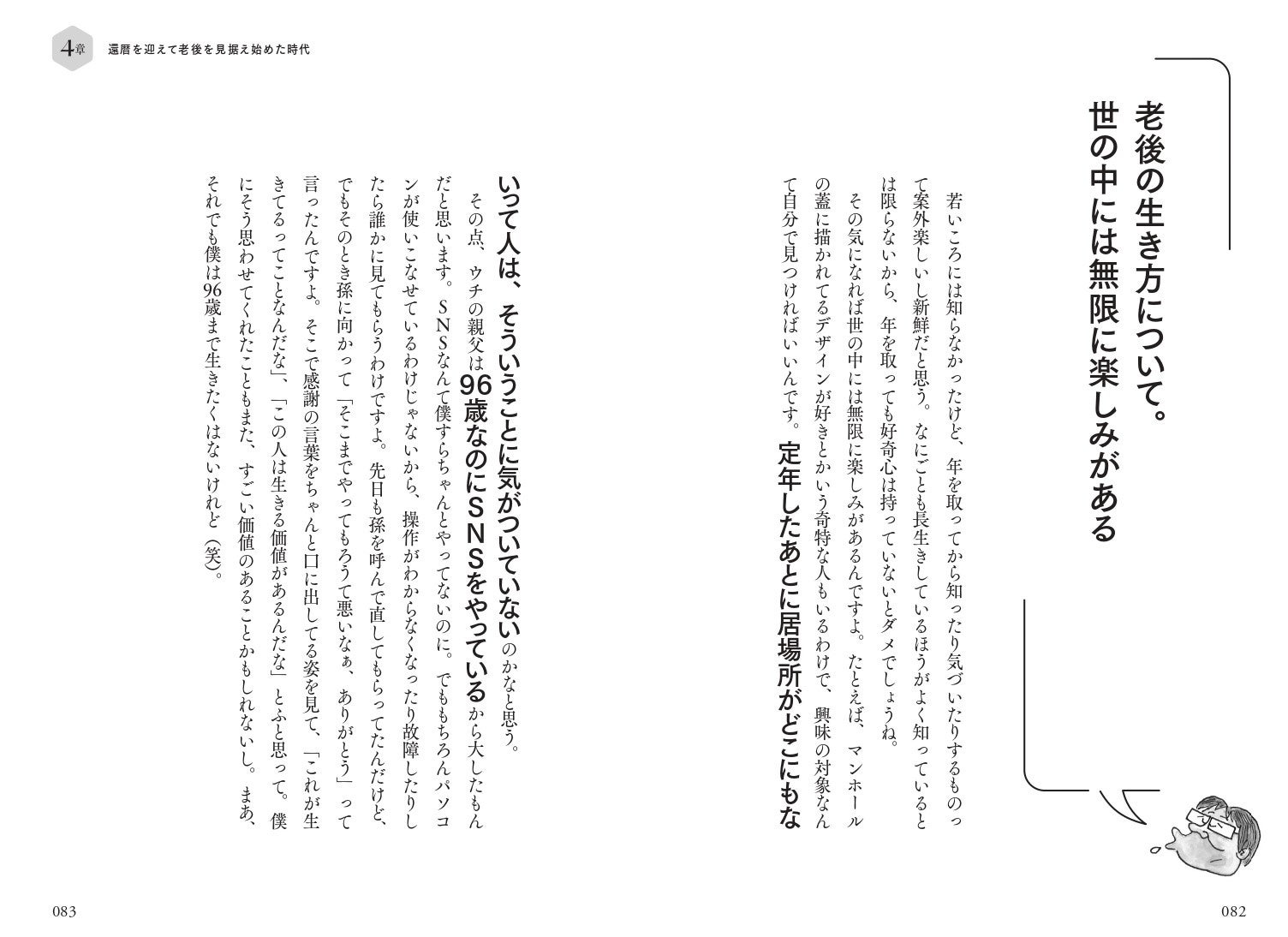 「年を取れば取るほど、精神的にも肉体的にもなるべく自分に負担をかけないで無理しないで生きていったほうがいい、と僕は思っています。そのためには60代でも70代でもなにかを楽しんだりなにかを捨てたりということが必要だから、その取捨選択を手伝えるような本になればいいんじゃないかな、って思うのです」