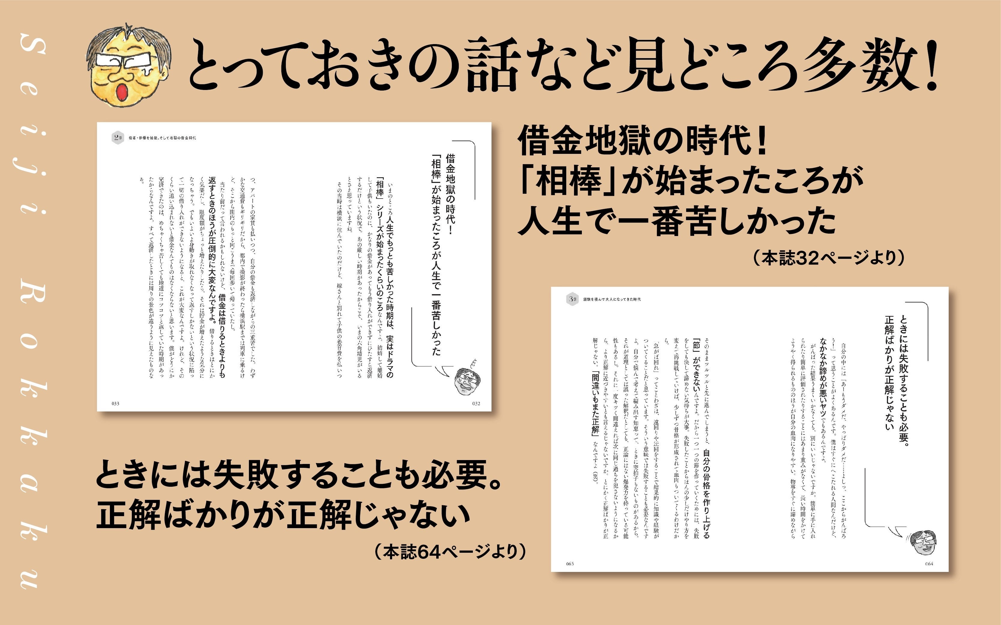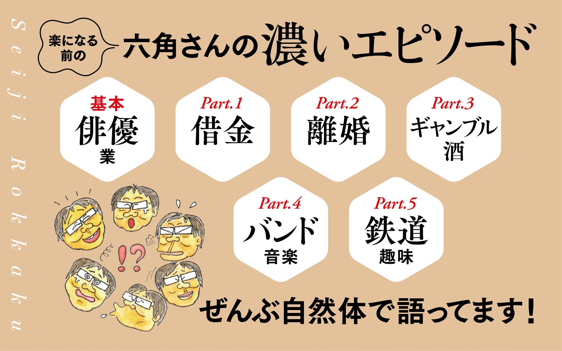 その生き方は、世の中のレールからちょっとはずれているかもしれない、でも「自分軸」の生き方。なにがあっても飄々と乗り越える、地に足の着いた生き方。明るくて楽しくて、上機嫌。その六角精児流生き方の秘訣、秘密がこの本には載っています。