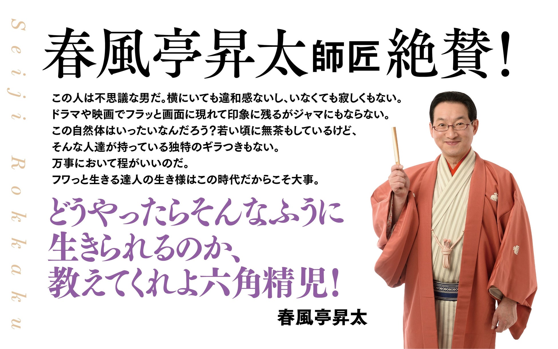 そんな悩みや不安をかかえて気持ちが晴れないひとがどんどん増えている昨今。その気持ちをすーっと楽にする本が登場しました。こちら『六角精児の無理しない生き方』です。